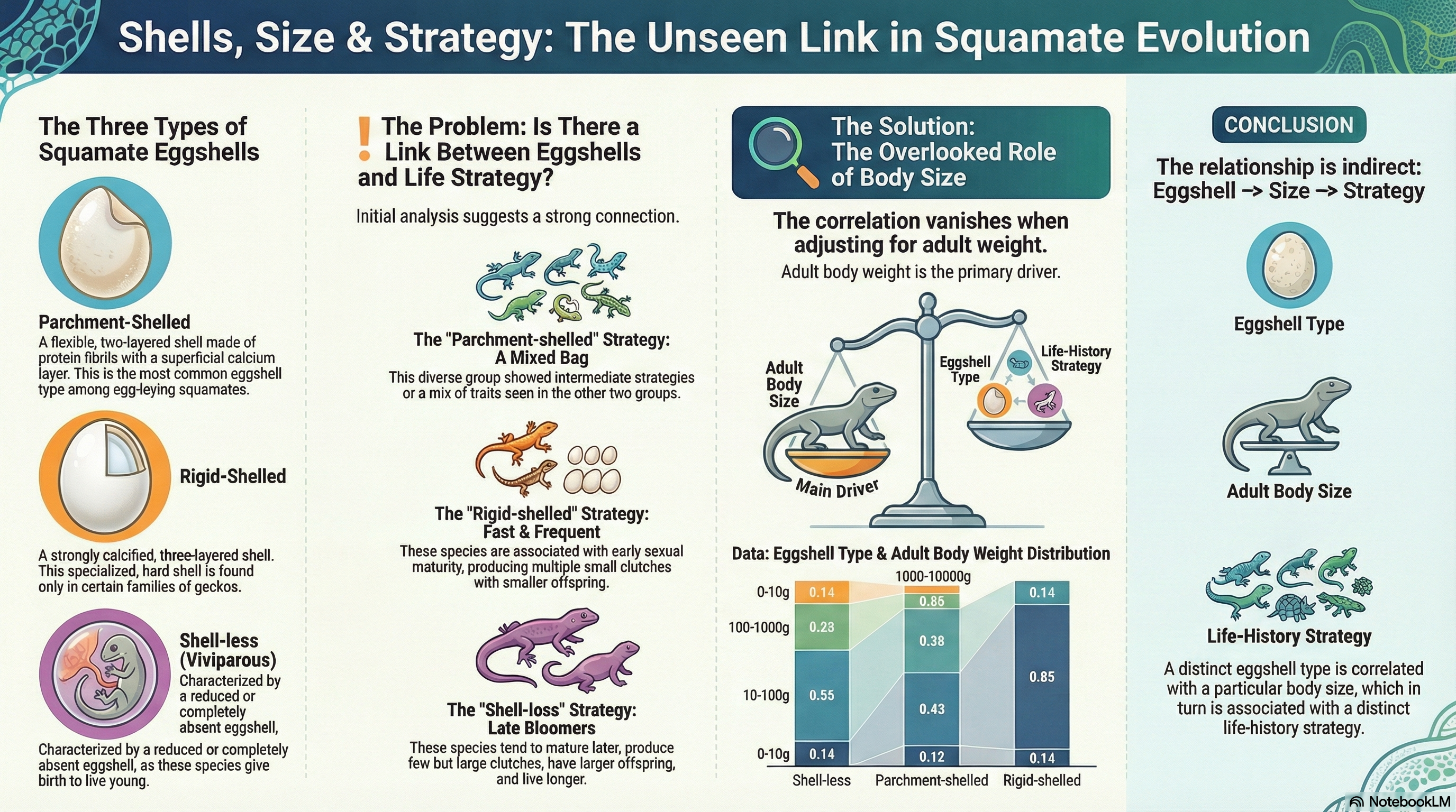 Eggshell types and their evolutionary correlation with life-history strategies in squamates.