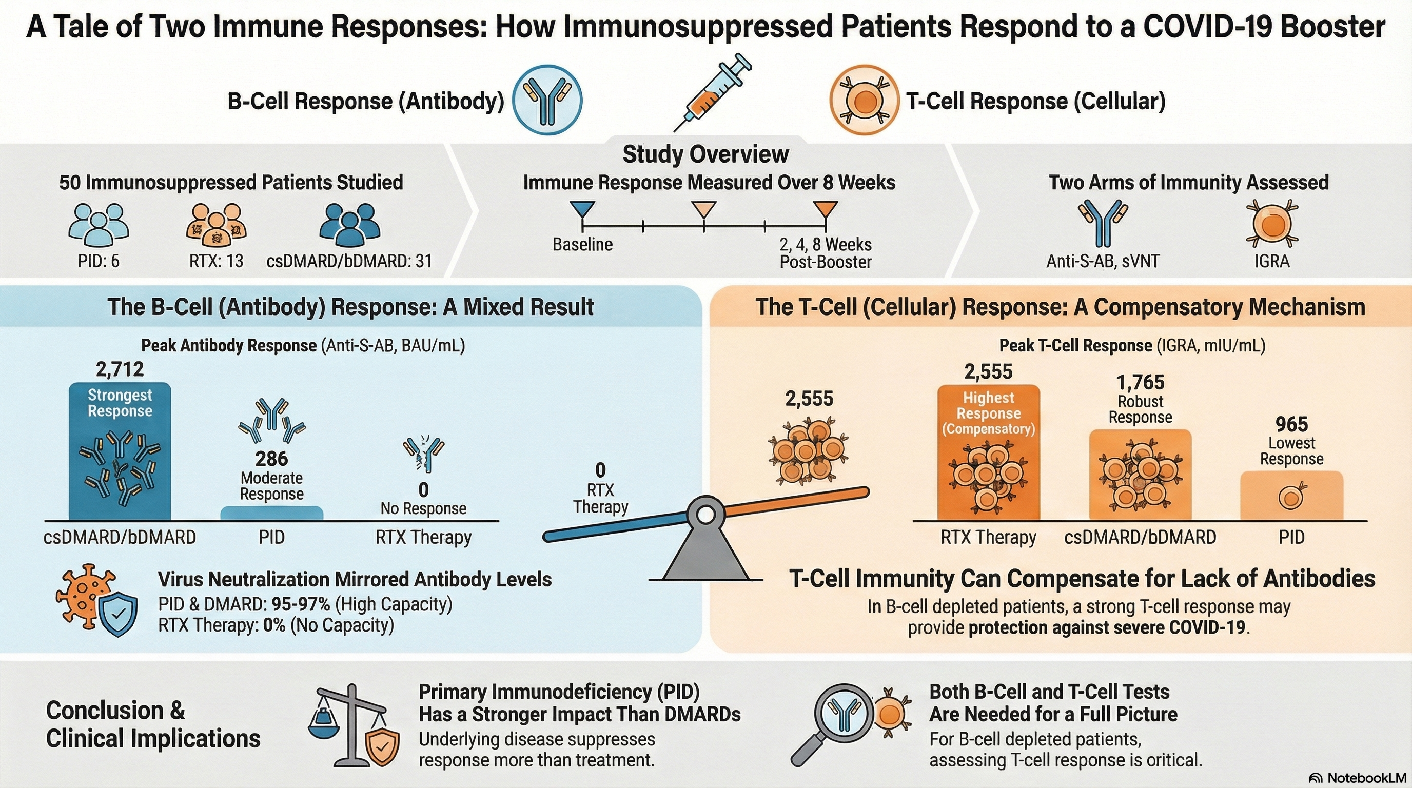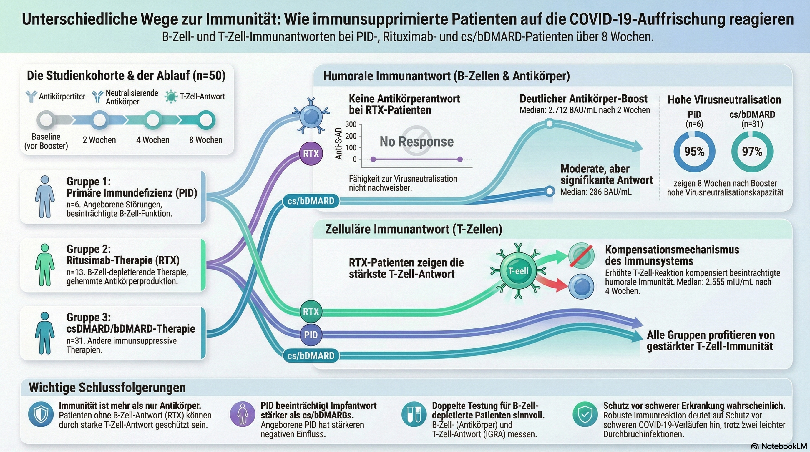 Impact of different classes of immune-modulating treatments on B cell-related and T cell-related immune response before and after COVID-19 booster vaccination in patients with immune-mediated diseases and primary immunodeficiency: a cohort study.